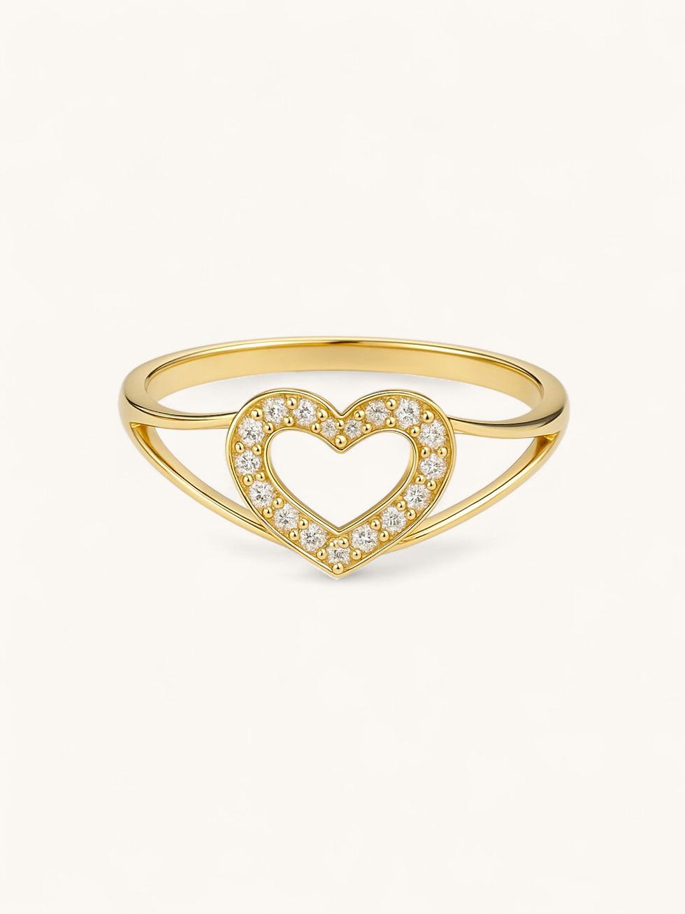 Heart Stud Earrings with Stone Detailing, 14K Gold